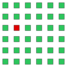 The neural processing that underlies bottom-up attention is sometimes called salience computation. Color-tuned neurons respond to the color features, with different neurons responsible for each location of the visual field. Neighboring colors are then compared to each other, with the aim of strengthening the neural response to colors that are different than most of their neighbors. This is achieved partly through neural inhibition, where neurons that respond to the same feature inhibit each other’s activity. In the example above, then, green-responding neurons inhibit green-responding neurons nearby. Because the red patch has no red neighbors, nothing inhibits it, so the corresponding neural activity is higher for it than to the green elements.