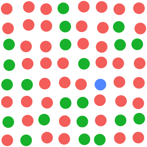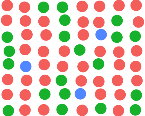 A complication in visual search experiments for a lone target (like a lone blue circle in a sea of red and green) is that it is the only item in that display which has that feature. As described in 5, bottom-up attention will drive attention toward the location of the uniquely-colored object.