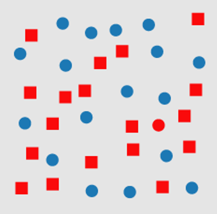 In the below display, your task is to search for the red circle, which is a combination of features - red and circular.